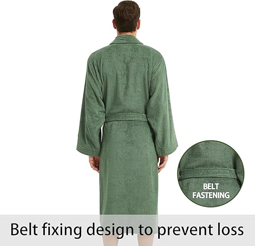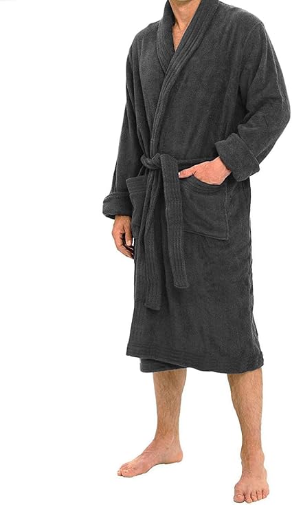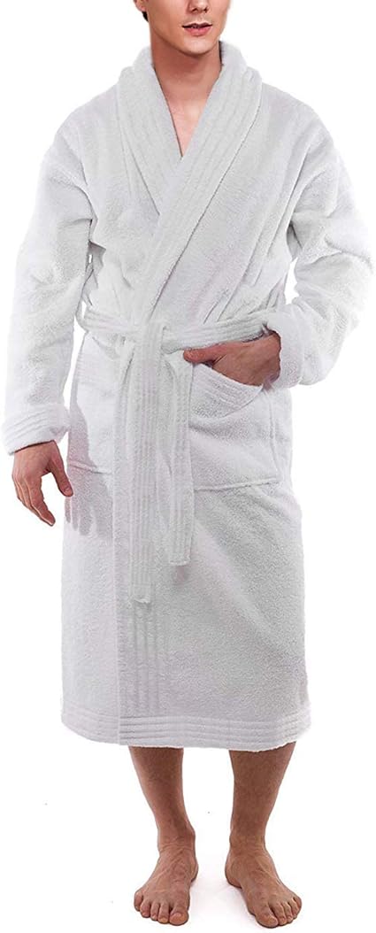 Comes in Small, Medium, and Large sizes to provide a perfect fit for everyone. Designed with a shawl collar, adjustable waist belt, and two front pockets for convenience and warmth.